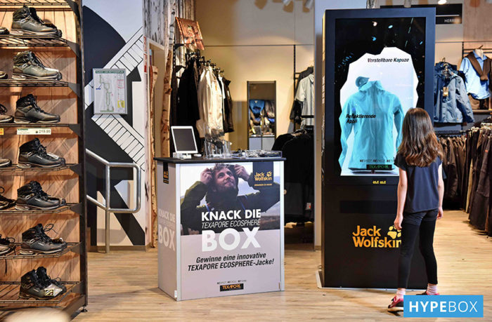 „Crack the box“ – this is the motto of this year‘s Jack Wolfskin campaign in which the new collection of TEXAPORE ECOSPHERE jackets will be presented interactively in 56 stores across Germany, Austria and Switzerland from March to April 2018.